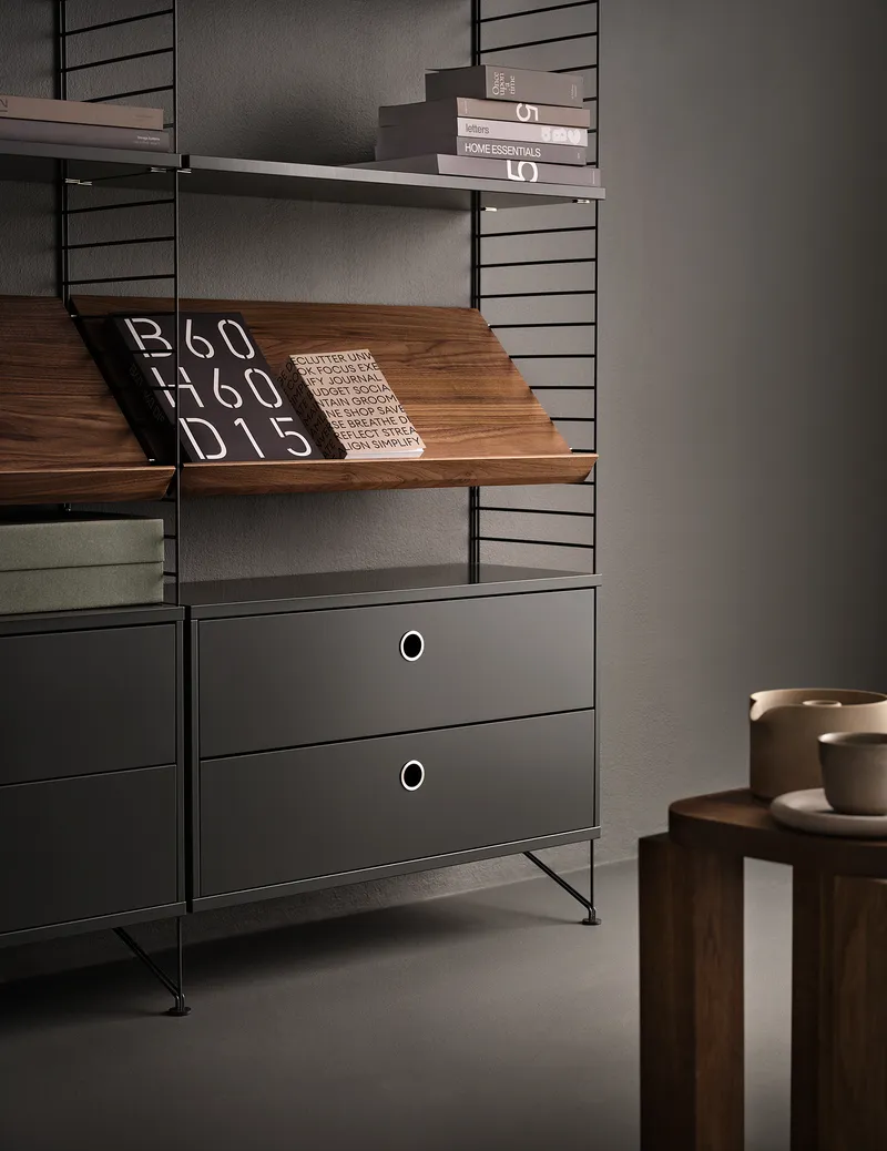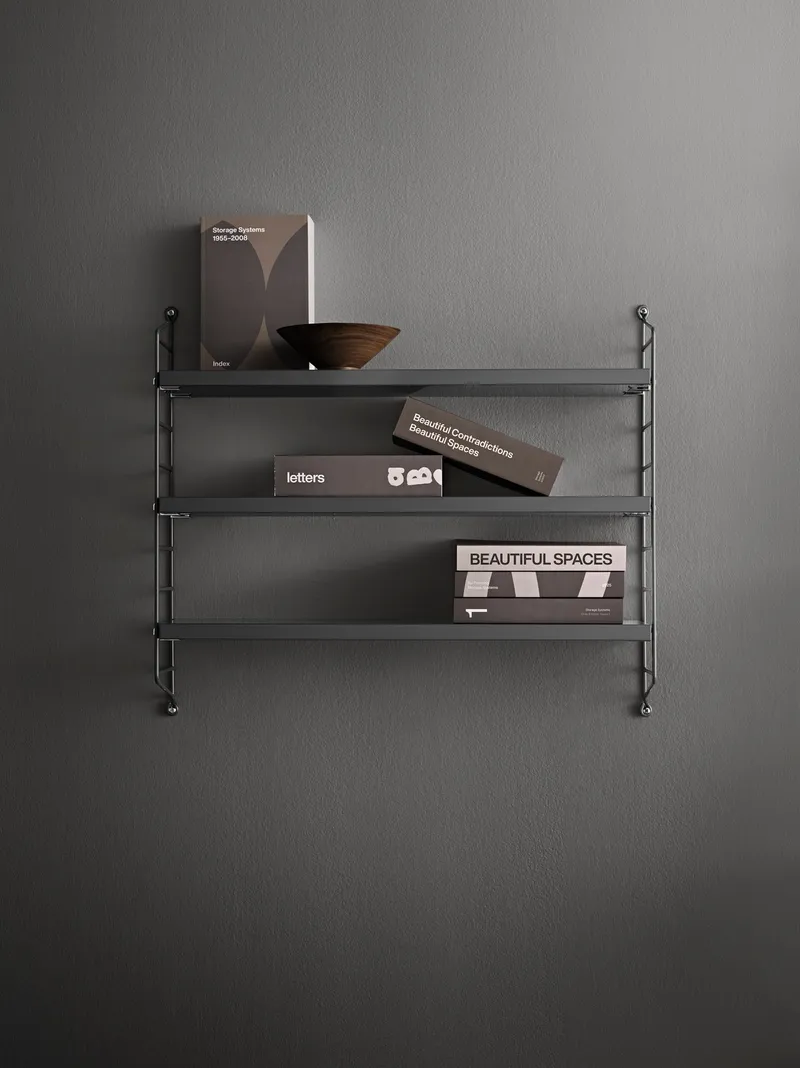 Und damit meinen wir nicht das Regal, auf dem sie stehen. Obwohl die Vielseitigkeit von String® scheinbar grenzenlos ist, wurde dieser Designklassiker seit seiner Konzeption nur in ausgewählten Farben und Materialien umgesetzt. Neue Ausgaben werden nicht einfach eingeführt, aber 2025 ist einer dieser seltenen Momente – lernen Sie Dunkelgrau kennen. Dieses Update wurde sorgfältig durchdacht, von der Frage, wie es mit der bestehenden Farbpalette harmoniert, bis hin zur Suche nach einem Farbton, der mit jeder Holzoberfläche im Einklang steht. Das Ergebnis ist ein fesselndes Dunkelgrau, das sich mühelos mit dem String® System kombinieren lässt.