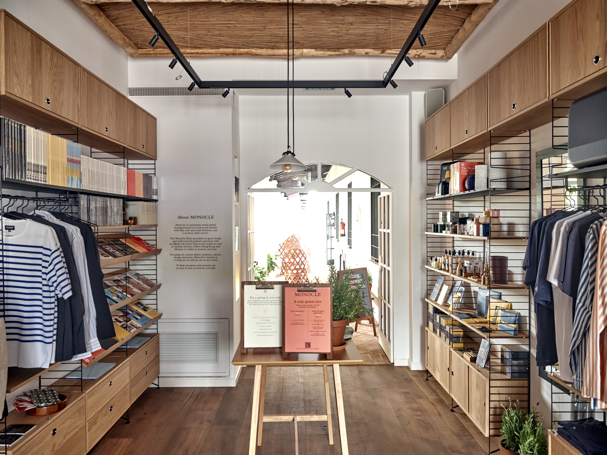 The Monocle Shop's summer pop-up at El Patio in Marbella Club is a well-curated boutique offering exclusive products for both you and your home. To showcase their range of products, they have chosen String shelves. It’s an excellent choice when there's a need to both display and neatly store items.